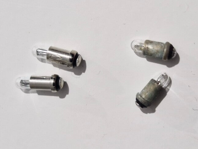 Das finale Problem, das es nach der Reparatur der Beleuchtung zu lösen galt, war, dass die Lichter nur sehr unzuverlässig und manchmal gar nicht leuchteten. Als Ursache wurde ein weiteres Problem der Stromübertragung ausgemacht: Die neu gekauften Ersatzlämpchen sind durch ihre leicht dünnere Geometrie etwas tiefer in ihrer Fassung als die ursprünglich dafür vorgesehenen Lämpchen und stehen daher etwas weniger vor. Dadurch kommt es zu keinem zuverlässigen Kontakt zwischen dem zentralen Pol der Lämpchen und den Dioden-Plättchen.