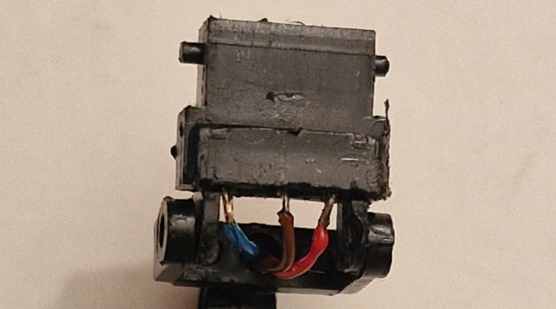 Beim Gegenstück der vom Motorwagen kommenden Buchse mit den Pins sind die 3 Kabel diesmal an winzige Kabelschuhe anzulöten, welche die Pins aufnehmen sollten. Diese Schuhe sind in eine Plastik-Ummantelung eingepasst und können zum Löten herausgenommen werden. Auch hier ist Vorsicht und Präzesion gefragt: Falls die neu angelöteten Kabel nämlich zu weit herausstehen, lässt sich der Plastik-Deckel auf der Buchse nicht mehr schliessen! Nach ein paar Versuchen jedoch wurde jedoch auch diese Herausforderung gemeistert: Trotz klaren Abnutzungserscheinungen der Plastik-Kupplung gelang es, die Verbindung zu reparieren und funktional zu erhalten.