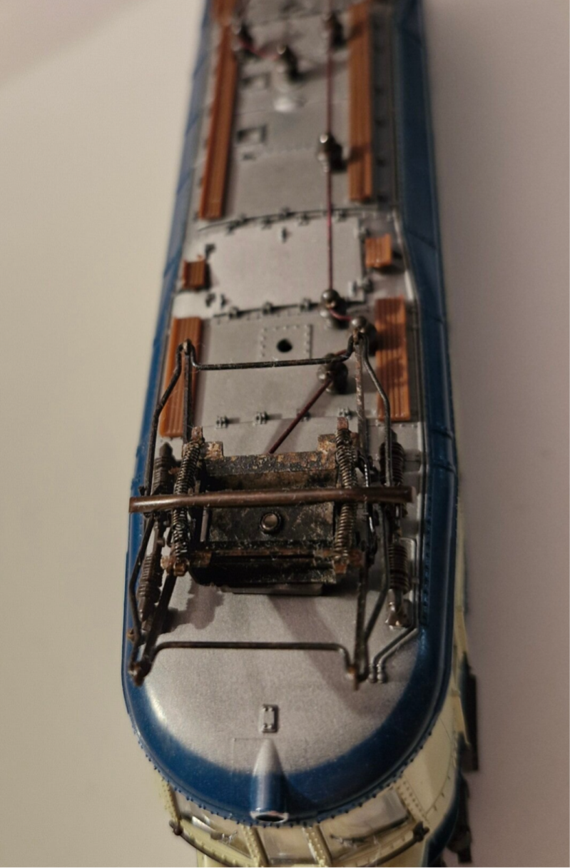 Ausserdem sind einige Klebestellen nahe einem Puffer erkennbar - hier wurde wohl viel zu viel Klebstoff verwendet, um ein Zurüstteil anzukleben, weswegen sich das Harz über den ganzen Bereich verteilt hat. Die Pantographen und andere Metallteile haben etwas Flugrost angesetzt.. einige transparente Plastikteile sitzen ausserdem locker und lassen sich eindrücken. Nun werden wir uns kurz dem technische Zustand der Lokomotive widmen.