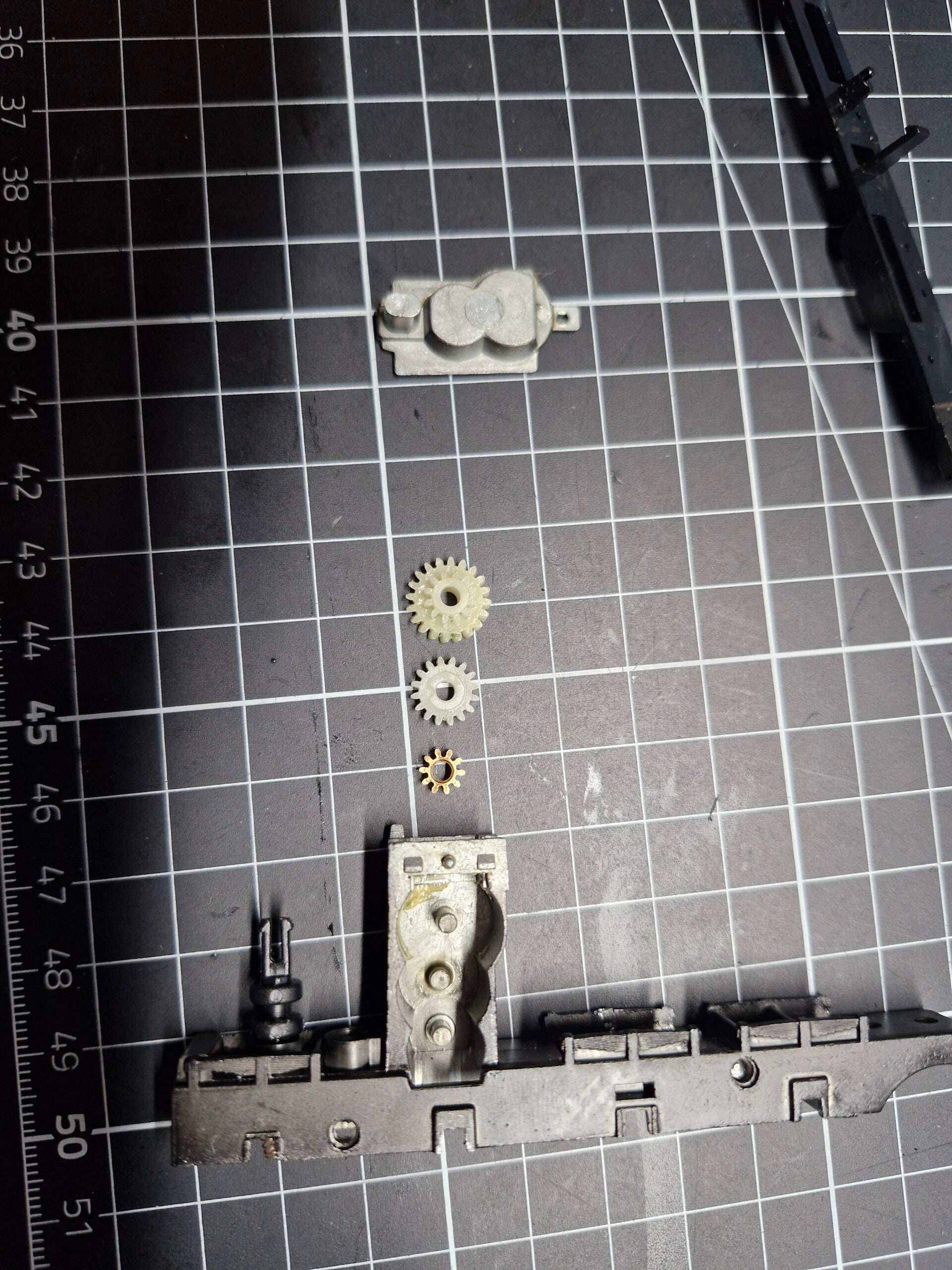 Eine kurze Überprüfung mit einer Modullehre zeigte übrigens, dass es sich beim Getriebe um ein Zahnradsystem mit Modul 0.5 handelte.