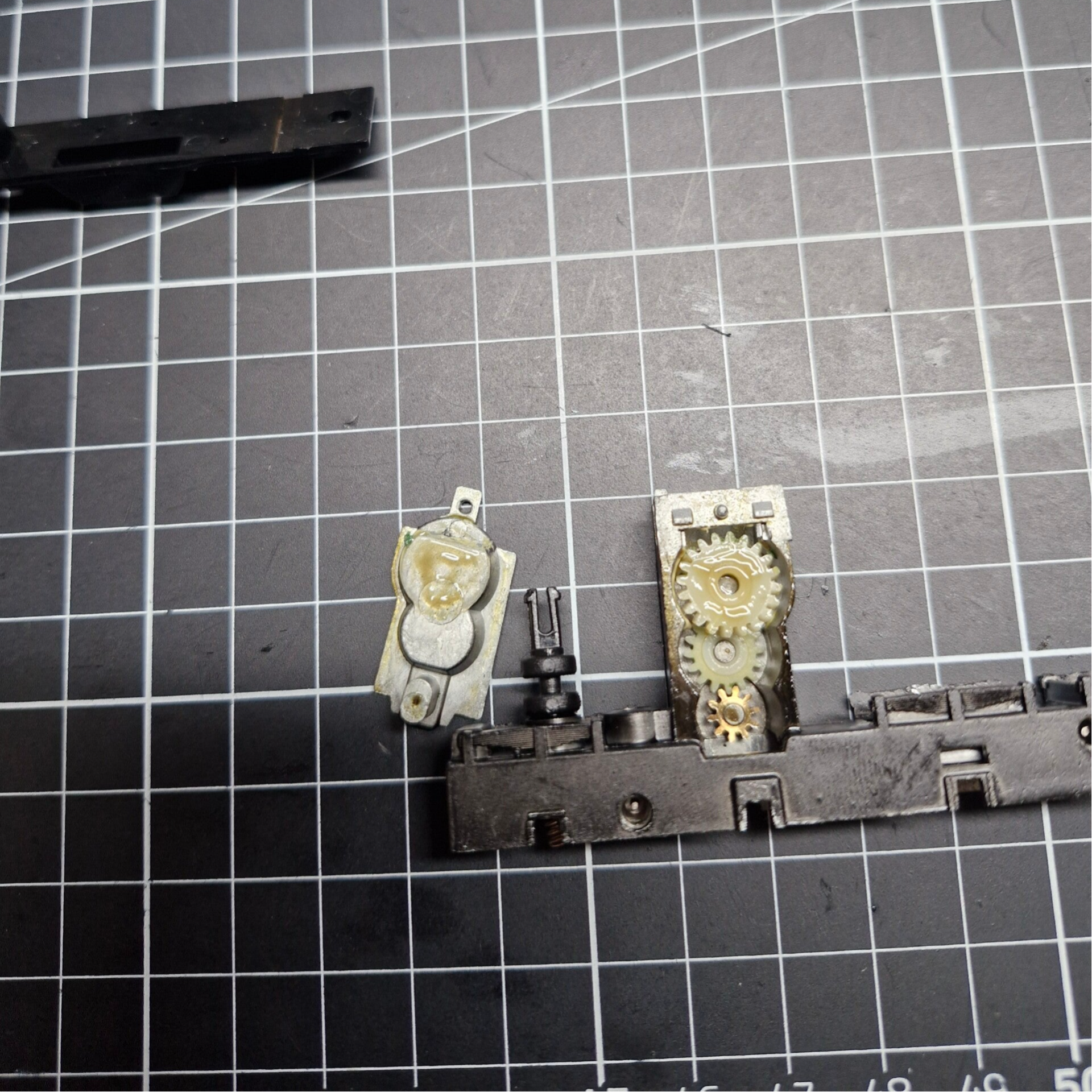Selbiges gilt für das Getriebe und die darin enthaltenen Plastikzahnräder: Auch hier war das komplette Volumen mit zäher Masse vollgefüllt: Kein Wunder, dass sich die Zahnräder nicht mehr richtig drehen konnten.