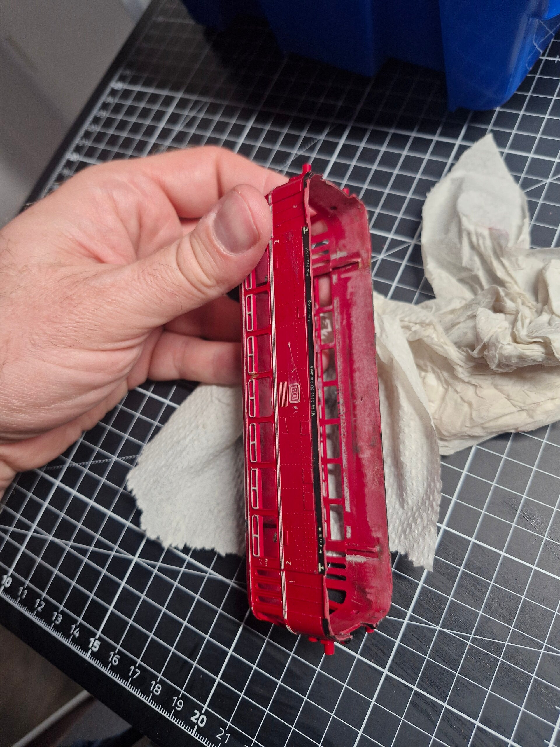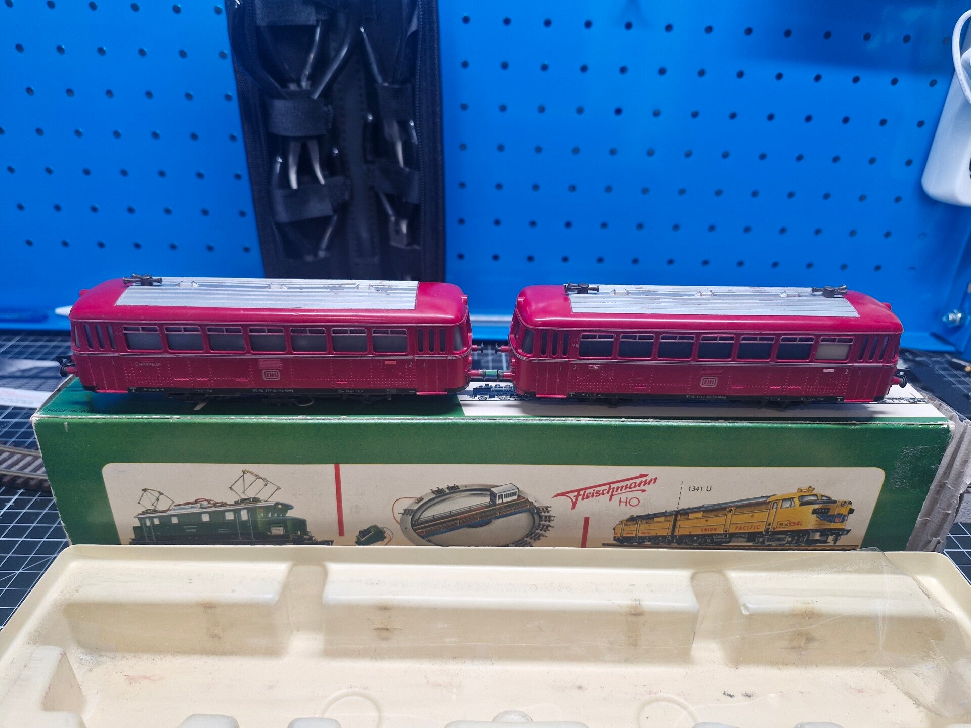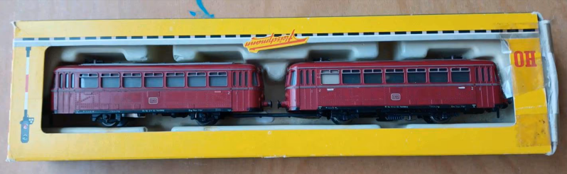 Dieser schöne Schienenbus wurde als Teil eines Konvoluts auf Kleinanzeigen.de erstanden, mit sehr wenigen Informationen und ungetestet - man musste also davon ausgehen, dass es das eine oder andere Problem geben könnte. Das Bild mit der ausgefransten OVP und fehlendem Klarsicht-Schutz liess darauf schliessen, dass der Schienenbus gebraucht war und, eventuell aufgrund eines Nachlassfalls, schon lange in der Verpackung lag.